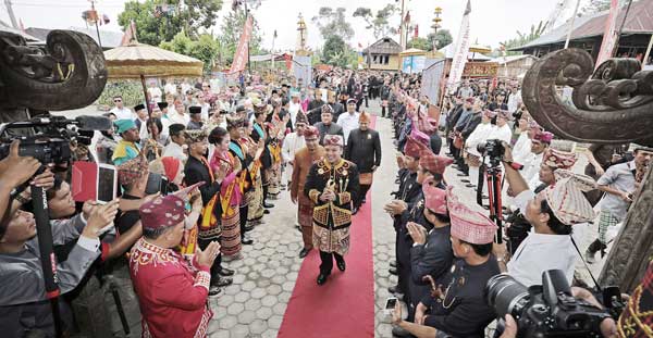 Tamu undangan kerjaan dari kerajaan lain datang disambut dengan penyambutan adat, beriringan kemudian gubernur dan wakil gubernur Lampung, lalu ketua MPR Zulkifli Hasan. Mereka disambut Khakot dan penyambutan adat Saibatin yang diselipkan Ringget Pepadun.