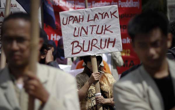 “Penetapan kenaikan upah tetap dilakukan tiap-tiap 1 tahun, namun peninjauan kenaikan KHL dilakukan 5 tahun sekali, artinya jika tiap tahun upah naik, itu hanya naik secara nominal yang tidak lebih dari 10 %, tetapi secara kualitas upah tidak mengalami kenaikan, karena kualitas KHL tidak berubah selama 5 tahun sementara harga barang dan kualitas barang tetap bertambah tiap tahunnya upah buruh mengalami desisit selama 5 tahun,” jelasnya.