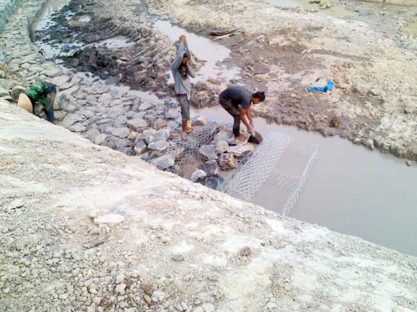 Dari pantauan wartawan Harian Pilar, selama proses pengerjaan proyek ini, memang kuat dugaan pada tahap awal pengerjaan tanggul tidak dilakukan pemadatan, sehingga kekuatan tanggul tersebut diragukan. Kondisi itu diperparah oleh penggunaan kawat bronjong yang disinyalir tidak sesuai spesifikasi yang ditentukan. Bahkan, warga setempat juga mengaku kondisi tersebut.