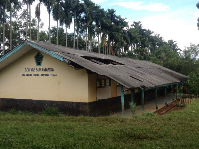 Harianpilar.com, Lampung Utara – Gedung Sekolah Dasar Negeri (SDN) 2 Sukamarga, Kecamatan Abung Tinggi, Kabupaten Lampung Utara (Lampura) kondisinya rusak parah. Bahkan, atap gedung sekolah yang terbuat dari asbes banyak pecah dan terbang terbawa angin, serta kayu penyanggahnya sudah lapuk. Jika dibiarkan, dikuatirkan sewaktu-waktu bisa roboh dan menimpa murid yang sedang mengikuti proses belajar mengajar (KBM). Potret buruk pendidikan di Lampung Utara?
