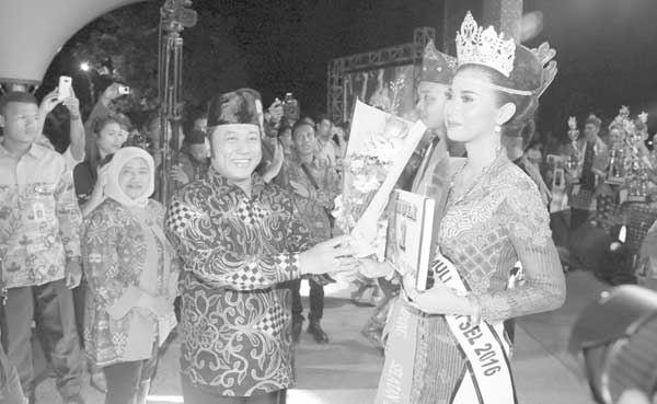 Harianpilar.com, Lampung Selatan – Dewan juri akirnya menetapkan Bunga dan Antonius Dendi, asal Kecamatan Sragi ditetapkan sebagai Muli Mekhanai Kabupaten Lampung Selatan tahun 2016, pada ajang grand final pemilihan Muli Mekhanai dalam rangka Festival Rajabasa IV tahun 2016 yang digelar Dinas Pariwisata dan Kebudayaan (Disparbud), di lokasi wisata kuliner, Dermaga Bom, Kalianda, Jumat (13/5/2016).