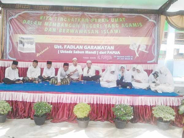 Acara tersebut menghadirkan da’i kondang dari Papua Ustd Fadlan Garamatan atau yang lebih akrab Ustd Sabun Mandi.