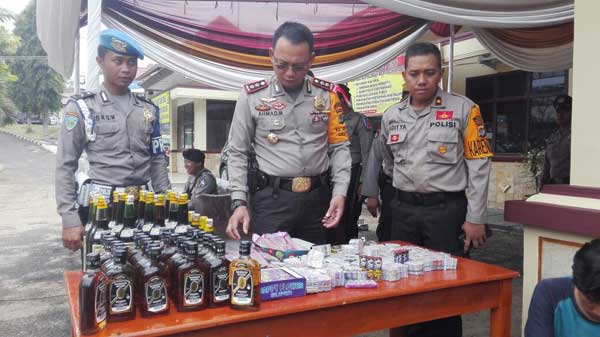 Harianpilar.com, Tanggamus – Kasus peredaran minuman keras (miras) berbagai jenis menduduki peringkat teratas dengan 38 perkara selama dilakukan Operasi Penyakit Masyarakat (Ops Pekat) Krakatau 2016 yang dilakukan Polres Tanggamus di Kabupaten Tanggamus dan Pringsewu. Polres berhasil mengungkap 60 kasus dengan 30 tersangka dari target operasi (TO) sebanyak 16 kasus, berhasil diungkap 15 kasus, dengan persentase 93,30 persen.