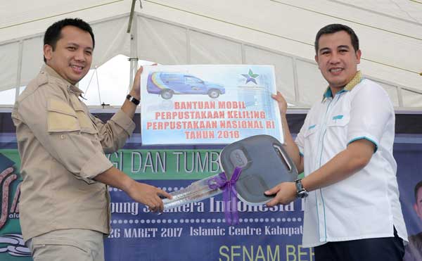 Harianpilar.com, Pesawaran – Gubernur Lampung M.Ridho Ficardo didampingi Bupati Pesawaran Dendi Ramadhona secara simbolis menyerahkan bantuan mobil perlindungan (Molin) perlindungan perempuan dan anak dari Kemeterian Pemberdayaan Perempuan dan Perlindungan Anak Republik Indonesia dan Bantuan Mobil Perpustakaan Keliling berikut buku-buku dari Perpustakaan Nasional kepada Pemerintah Kabupaten Pesawaran, pada acara Kegiatan Bakti Alumni Al-Kautsar (IKA Smalsar Berbakti), di Islamic Center Gedong Tataan Pesawaran, Minggu (26/03/2017).