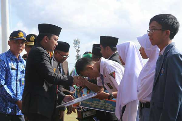 Pada kesempatan ini Gubernur Lampung juga menyerahkan piagam penghargaan dan piala kepada siswa berprestasi dan pemenang Lomba Sekolah Sehat Usaha Kesehatan Sekolah Tahun 2017.