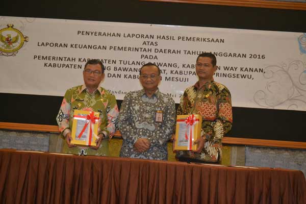 Kepastian Tulangbawang kembali mendapatkan WTP itu,  terungkap pada acara Penyerahan Laporan Hasil Pemeriksaan atas Laporan Keuangan Pemerintah Daerah Tahun Anggaran 2016 kepada 5 kabupaten di Provinsi Lampung, yakni Kabupaten Tulangbawang, Tulangbawang Barat, Waykanan, Pringsewu dan Mesuji, yang dilaksanakan oleh BPK di Bandarlampung, Selasa (30/5/2017).