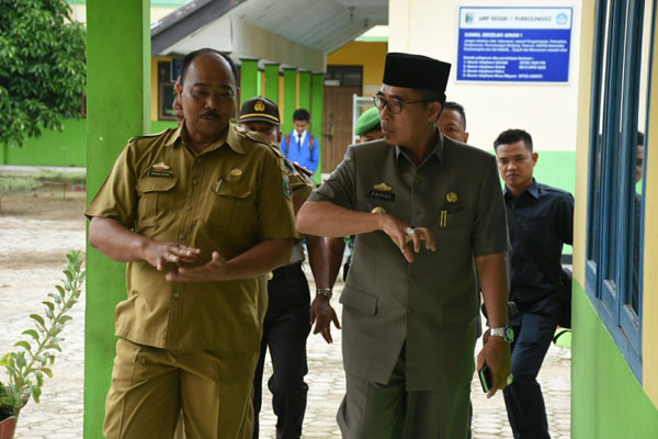 Harianpilar.com, Lampung Timur – Plt. Bupati Lampung Timur (Lamtim) Zaiful Bokhari didampingi Camat Purbolinggo, Syahrun dan Kapolsek Purbolinggo, Ipda. Dedi Supardi meninjau pelaksanaan hari pertama Ujian Nasional Berbasis Komputer (UNBK) SMP-MTs 2018 Kabupaten Lampung Timur di SMP N 1 Purbolinggo, Senin (23/04/18).
