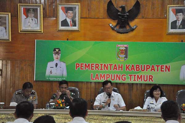 Hadir pada rapat tersebut Asisten Bidang Perekonomian dan Pembangunan, Junaidi, Kabagren Polres Lampung Timur, Kompol Bambang Sumpeno, Pabung 0411/LT, Mayor Kav. Joko Subroto, Sekretaris Dinas Pariwisata, Estuning Wariani, serta para kepala organisasi perangkat daerah (OPD) di Lingkungan Pemerintah Kabupaten Lampung Timur dan Camat se-Kabupaten Lampung Timur.
