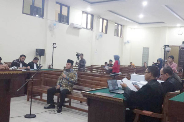 Terdakwa Zainudin Hasan yang juga adik kandung dari Ketua MPR Zulkifli Hasan ini, sesekali terlihat tertunduk lesu dan gelisah saat mendengarkan jalannya persidangan dengan agenda pembacaan tuntutan oleh JPU. (Maryadi)