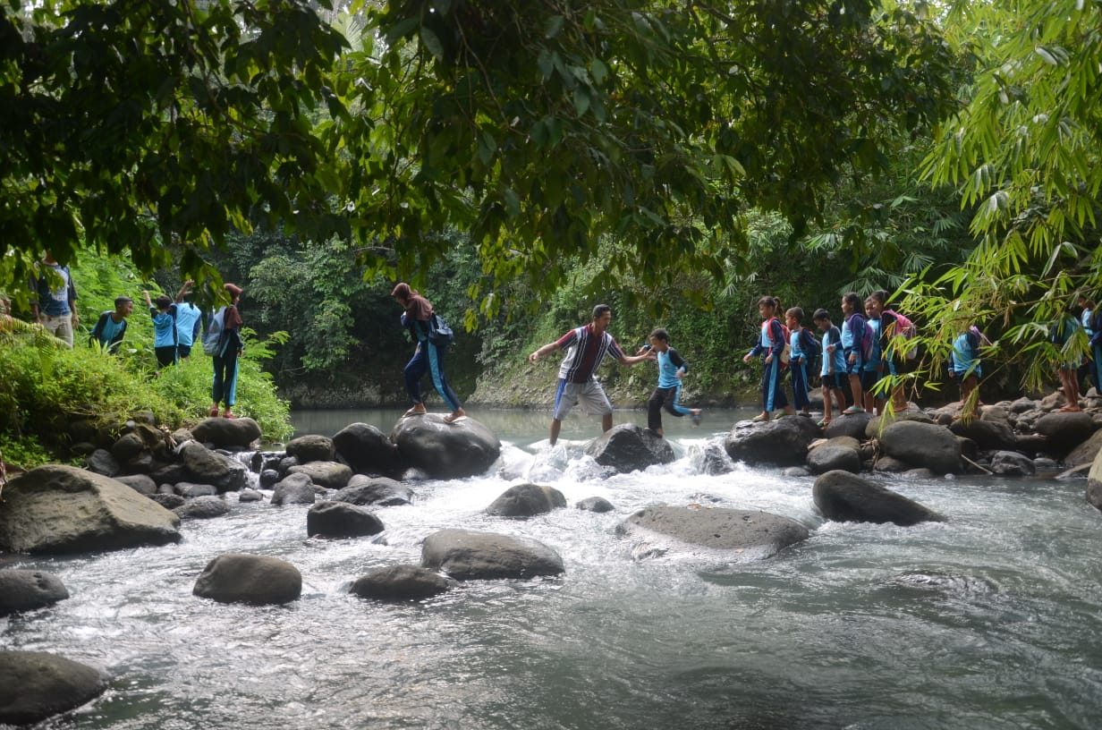 Diceritakannya, batuan yang licin bisa saja membuat para warga yang menyebrang terpeleset, tidak jarang untuk melintasi warga harus melepas alas kaki yang mereka kenakan, termasuk anak anak yang akan sekolah bahkan tidak jarang harus melepas pakaian dan sepatu agar tidak basah jika harus terjebur saat melintas sungai.
