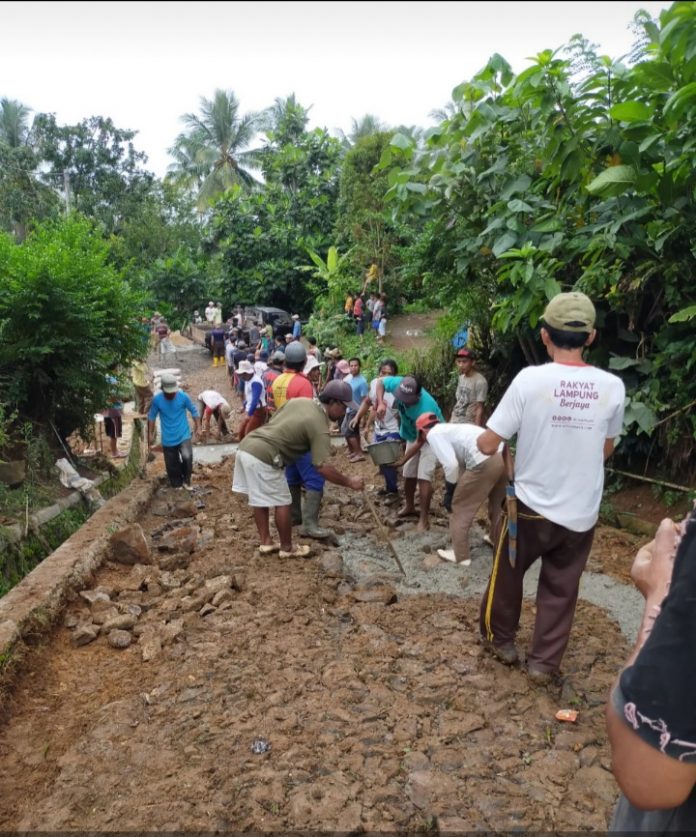 Harianpilar.com, Pesawaran – Puluhan warga Desa Sinar Harapan, Kecamatan Kedondong, Kabupaten Pesawaran, bekerjasama dengan pemerintah desa (Pemdes) bergotong royong memperbaiki jalan rusak. Jalan tersebut merupakan jalan utama bagi warga desa setempat untuk akses transportasi.