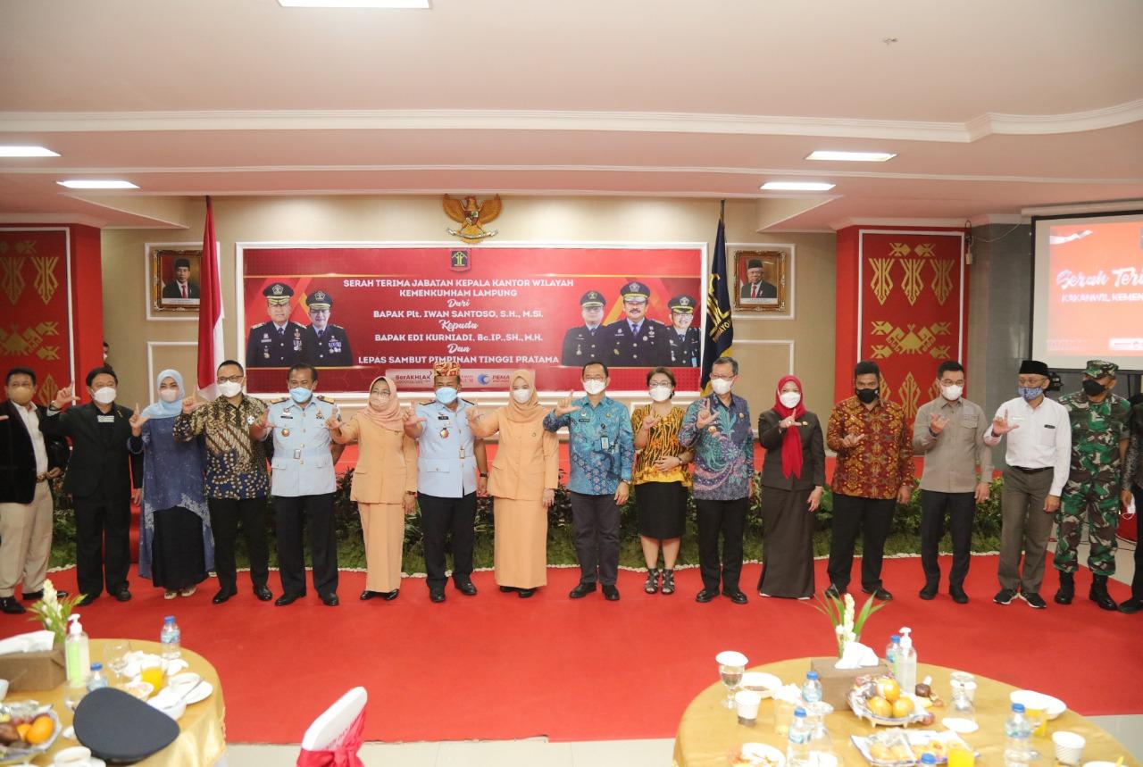 Pejabat lama Plt. Kakanwil Kemenkumham Lampung Iwan Santoso menyampaikan ucapan terimakasih dan penghargaan tinggi karena telah memberikan dukungan dalam menjalankan roda pemerintahan selama menjabat sebagai Plt. Kakanwil Kemenkumham Lampung.