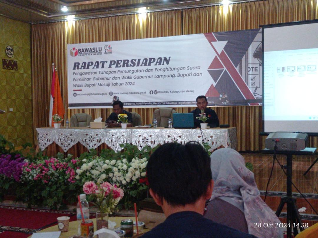Ketua Bawaslu Deden Cahyono, mengatakan, bimtek ini tentunya sebagai bentuk persiapan Pengawasan terhadap tahapan Pemungutan dan Penghitungan suara Pemilihan Gubernur dan Wakil Gubernur Lampung, dan Pemilihan Bupati dan Wakil Bupati Mesuji tahun 2024.