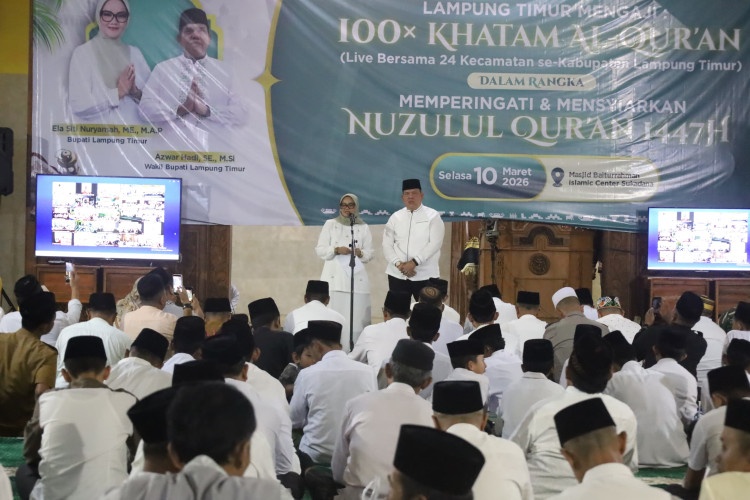 Harianpilar.com, Lampung Timur – Pemerintah Kabupaten Lampung Timur menggelar kegiatan Lampung Timur Mengaji 100 Kali Khatam Al-Qur’an dalam rangka memperingati dan mensyiarkan Nuzulul Qur’an 1447 Hijriah, Selasa (10/03/2026).